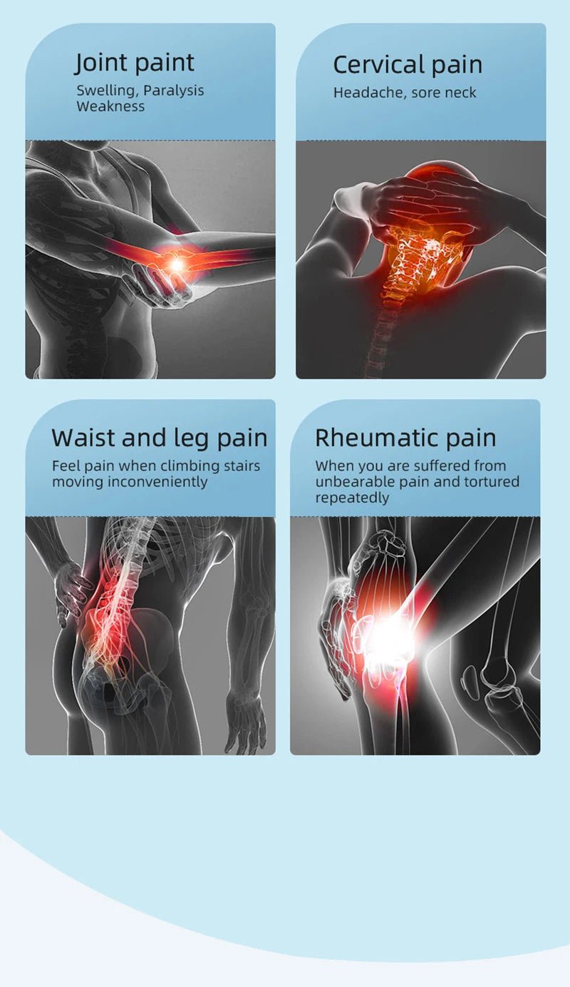 This low level laser therapy device uses red and near-infrared laser wavelengths to support joint function, tissue recovery, and circulation modulation.