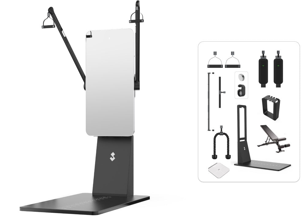 This smart fitness mirror is an interactive digital home gym system designed for full-body training, strength, mobility, yoga, pilates, and functional workouts.